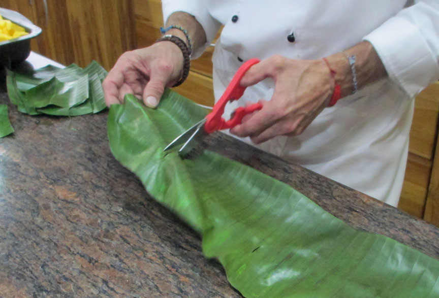 We even learned out to prepare a banana leaf for a tropical appetizer. (photos below in the shrimp recipe).