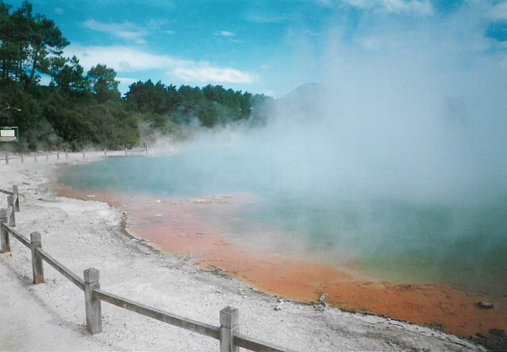 Arriving in Rotorua we managed to get a basic bunk-bedded room at the Kiwi Paka youth hostel, and headed out to the Wai-o-Tapu thermal wonderland that Rotorua is famous for! The Wonderland is a spectacular showcase of New Zealand’s most colorful and unique geothermal elements sculpted by thousands of years of geothermal activity. The area is associated with volcanic activity dating back about 160,000 years and is strictly protected.