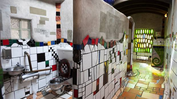 Time to move on and search for the famous toilets – the Hundertwasser toilets in Kawakawa, made from reclaimed materials and a mix of pillars, tiles and decorative features. We later found out these are the most photographed toilets in New Zealand! They are mentioned in all the tourist books and my youngest was super keen to see them. We found them to be bright and very quirky and actually worth a visit!