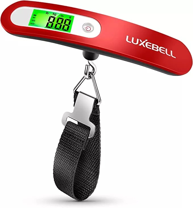 We recommend a simple digital luggage scale. The one we’ve found is compact, accurate and easy to read.