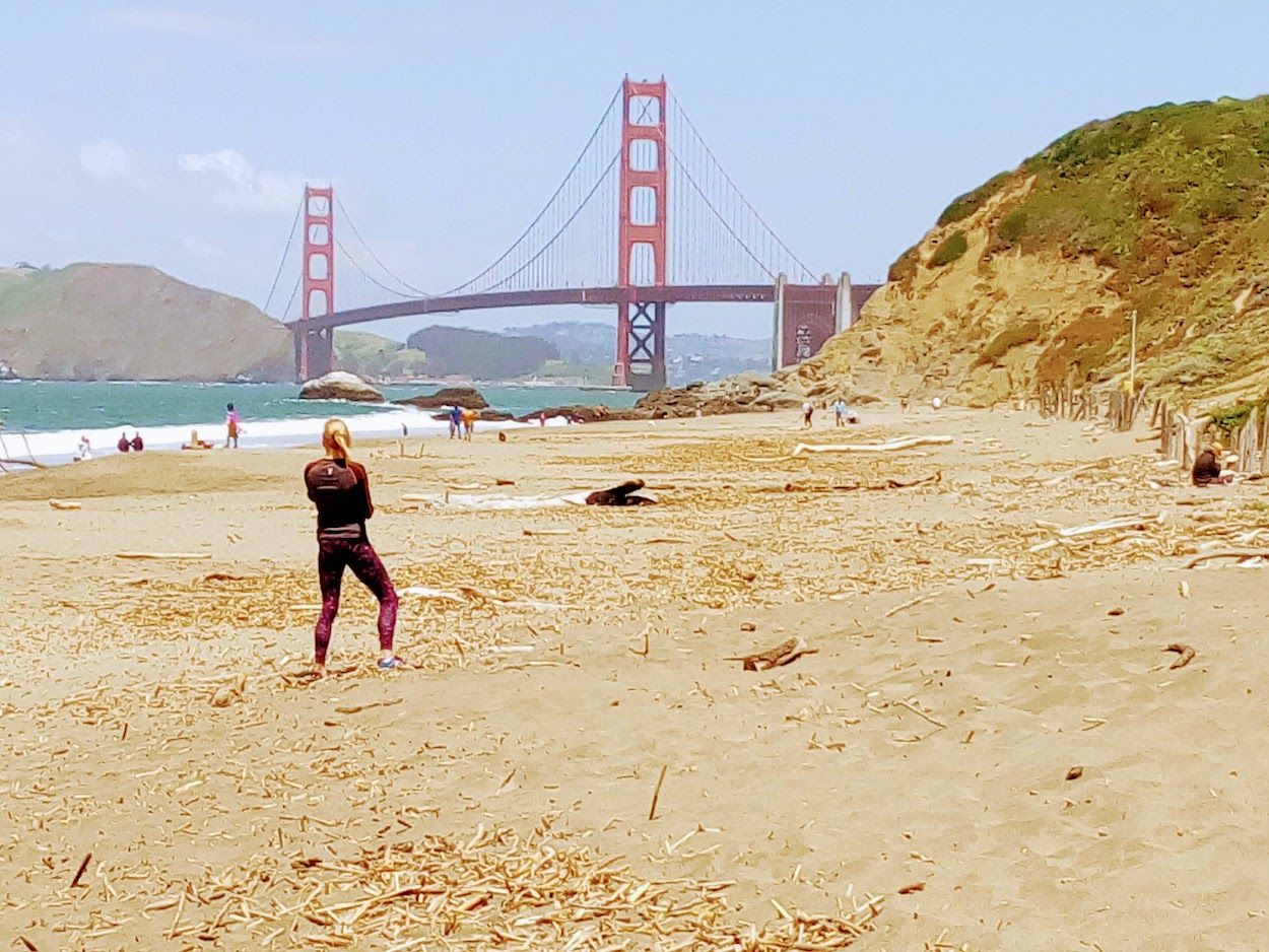 Third, we wanted to explore the trail that goes West from the base of the South end of the bridge. We ended up on Marshall Beach, with amazing views of the bridge from the west side. I also discovered lots of small pieces of driftwood for my driftwood art projects!