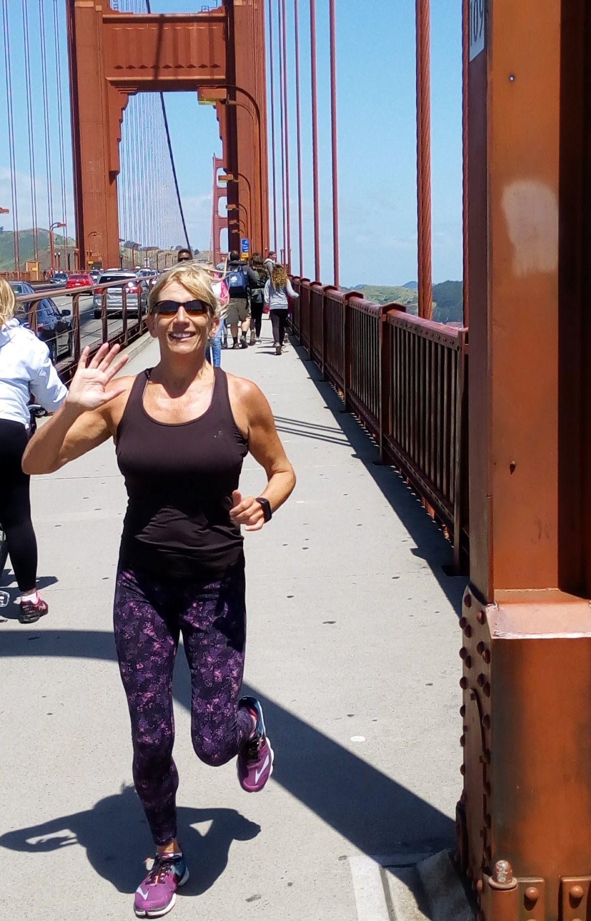 Second, we decided to run across it and back. We had recovered from our Marathon at Big Sur, and wanted to stretch our legs. So we caught a bus to the Welcome Center at the South end of the Bridge, and started running! This was really good fun, and gave us a totally different aspect of the bridge.