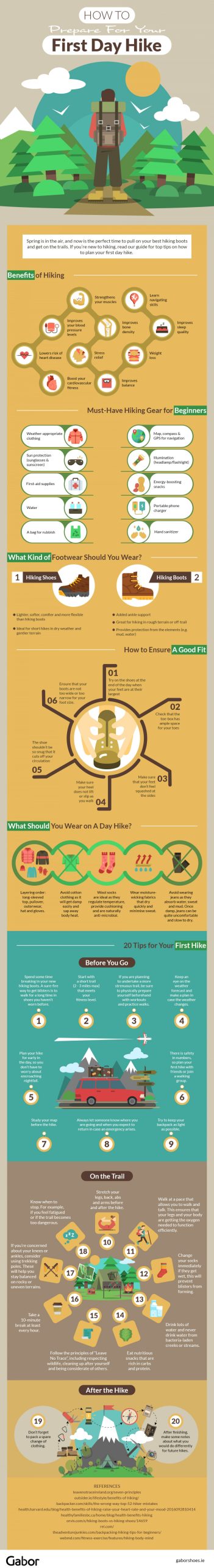 These five reasons are merely the tip of the travel iceberg when it comes to hiking and walking. To delve deeper and help get you started on preparing to take your first day hike Gabor Shoes developed this infographic resource. Check out the guide below for more reasons to hike, the clothes and equipment you need, decoding hiking shoes and boots (including the fit!), and the ins and outs of planning your hike.